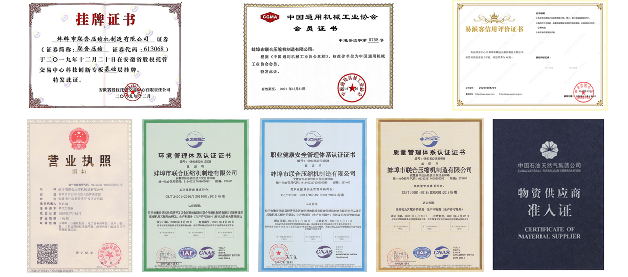 蚌埠市聯合壓縮機制造有限公司于2002年成立,安徽省高新技術企業(yè)??筛鶕蛻粜枨髮iT設計、定制生產。壓縮機產品已經覆蓋國內所有需求行業(yè)和地區(qū)并出口俄羅斯、塔吉克斯坦、印度、巴基斯坦、朝鮮等多個國家,是眾多國內外企業(yè)的合格供應商和合作伙伴。2003年榮獲壓縮機行業(yè)”中國質量萬行”守誠信、講信譽”,質量、信譽雙保障實施企業(yè),并順利通過ISo9001:2000國際質量體系認證。售后服務體系完善,壓縮機零部件齊全,提供一年質保,終生售后服務。